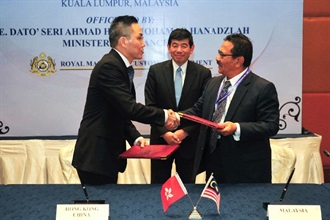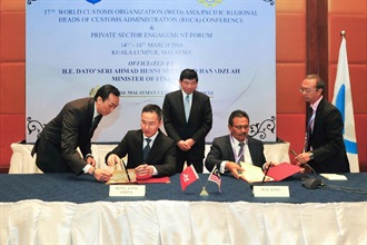 The Commissioner of Customs and Excise, Mr Roy Tang, attended the 17th World Customs Organization Asia/Pacific Regional Heads of Customs Administrations Conference held in Kuala Lumpur, Malaysia, today (March 17) and signed an arrangement with the Director General of the Royal Malaysian Customs Department (RMCD), Dato' Sri Khazali bin Haji Ahmad, to mutually recognise the Authorized Economic Operator (AEO) Programmes of Hong Kong and Malaysia.