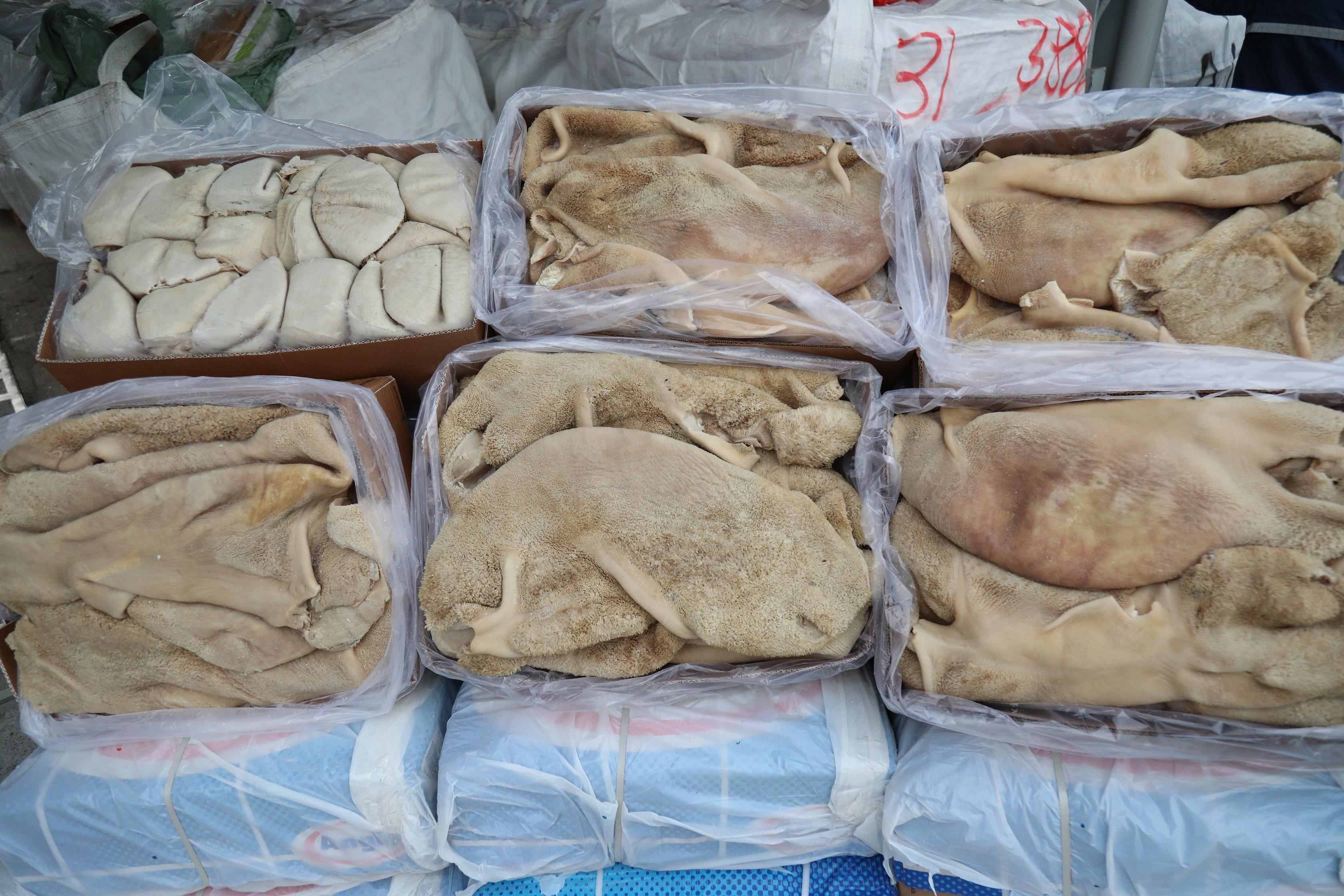 ​Hong Kong Customs yesterday (January 13) mounted an anti-smuggling operation in the south-western waters of Hong Kong and detected a suspected smuggling case involving a cargo vessel. About 35 tonnes of suspected smuggled frozen meat with an estimated market value of about $5.2 million were seized.
