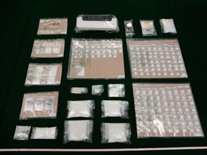 After follow-up investigation, Customs officers escorted the arrested man to a residential premises nearby for a search, during which about 1.6kg of suspected ketamine, about 25g of suspected methamphetamine, a small quantity of suspected herbal cannabis and a batch of drug packaging paraphernalia were seized. Later, a small quantity of suspected methamphetamine was further seized inside the arrested man's residence in the district.
