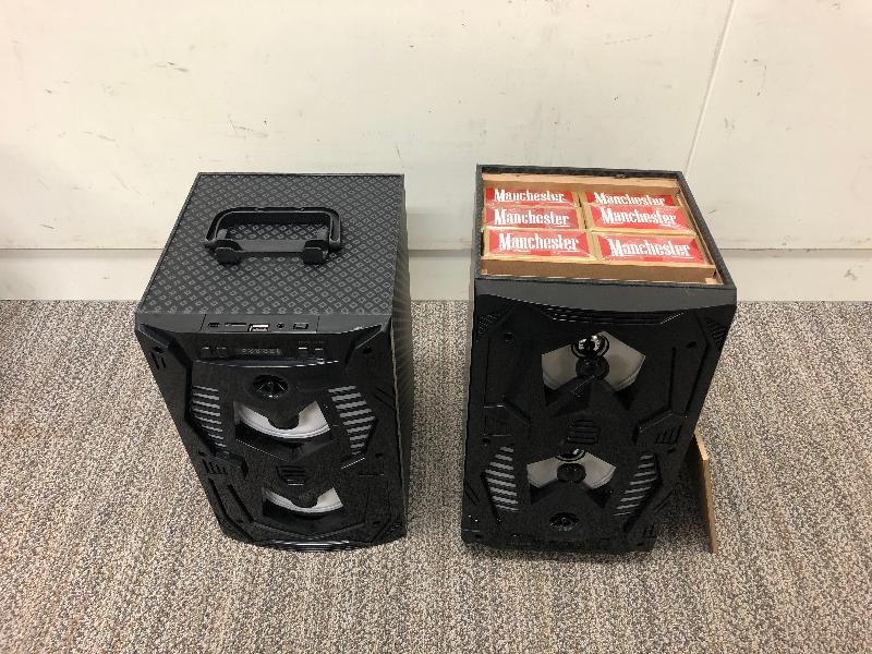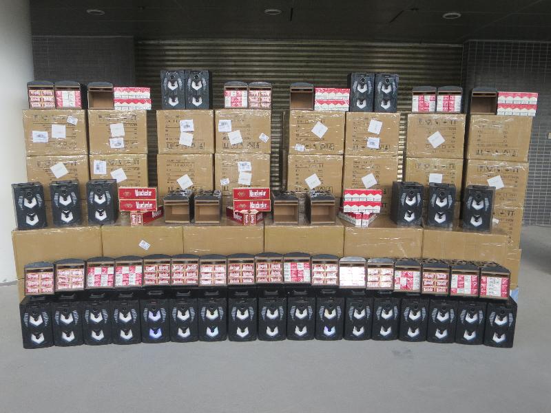 Customs officers intercepted an incoming lorry declared as carrying assorted goods at Shenzhen Bay Control Point yesterday. After inspection, Customs officers found the batch of suspected illicit cigarettes concealed inside 516 speakers, which were placed inside 86 cartons mix-loaded with other goods on board the lorry.