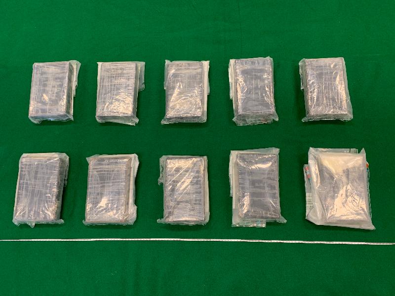 Also, Customs officers inspected an air cargo consignment, declared as traditional pastry, arriving in Hong Kong from Malaysia at HKIA on August 6 and found the batch of suspected cocaine mingled with some pastry inside the packaging boxes. Upon a follow-up investigation, Customs officers yesterday arrested a 34-year-old man suspected to be in connection with the case in Sha Tin.