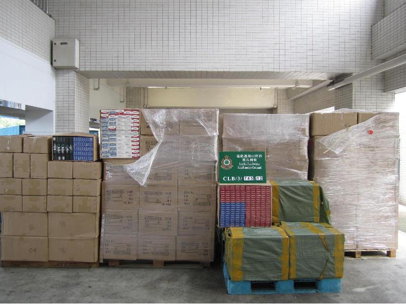 Hong Kong Customs yesterday (June 13) and today (June 14) swooped on two illicit cigarette smuggling syndicates in Man Kam To and Lok Ma Chau Control Points respectively. On board two cross-boundary lorries, a total of 240 boxes containing 1.75 million sticks of duty-not-paid cigarette were found. The total value is about $4.4 million with a duty potential of $3 million. In the operations, five men aged 28 to 45 were arrested and three lorries used in smuggling and distribution of illicit cigarettes were seized.