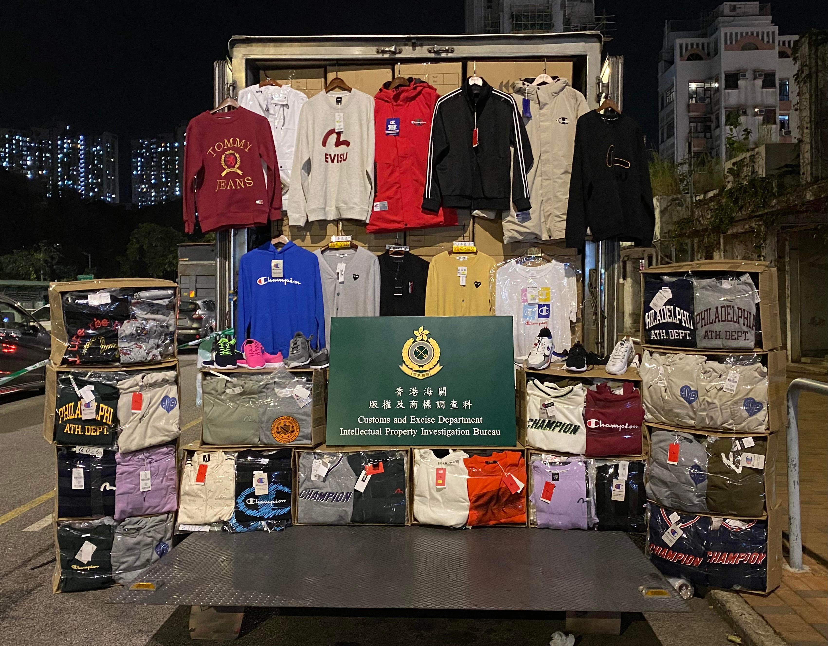 Customs earlier conducted patrols and discovered some retail shops selling suspected counterfeit goods. After an in-depth investigation and with the assistance of trademark owners, Customs officers took enforcement action yesterday and raided two retail shops in Fanling and Kwai Chung as well as a storage centre of suspected counterfeit goods in Fanling. A batch of suspected counterfeit goods, including clothing, bags and sports footwear, was seized.