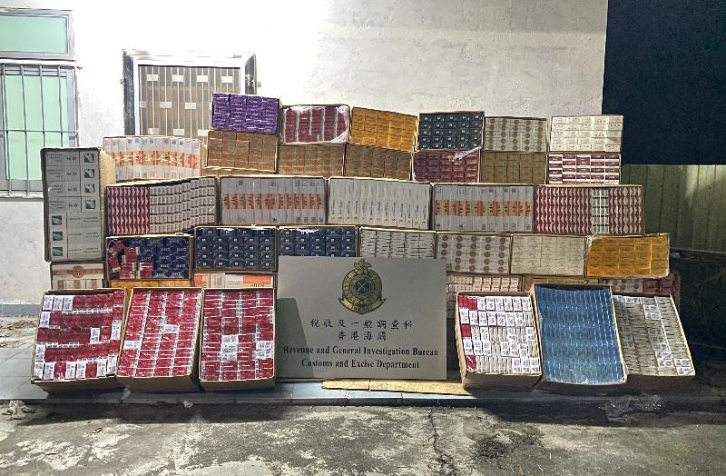 During an anti-illicit cigarette operation conducted in Yuen Long yesterday, Customs officers seized the batch of suspected illicit cigarettes from a stone hut and a light goods vehicle (LGV). Three men suspected to be in connection with the case, aged between 23 and 58, were arrested and the LGV has been detained.
