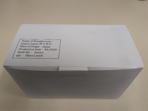 Customs immediately launched an investigation and discovered that the surgical masks involved were supplied to the GLD by a local trading company through a logistics company. The surgical masks were packed in paper boxes or plastic bags with 50 pieces in each box or bag. The information of a Japanese manufacturer was provided on the packaging and the place of origin shown was Japan. Preliminary investigation revealed that most of the surgical masks were not manufactured in Japan, which was different from what had been declared.