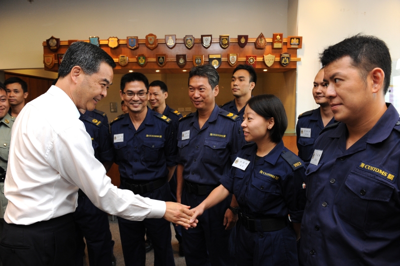 During the visit, the Chief Executive also learnt about the close co-operation between Hong Kong Customs and its overseas counterparts in combating drug and smuggling activities and met front-line Customs officers to gain a better understanding of the challenges they face.