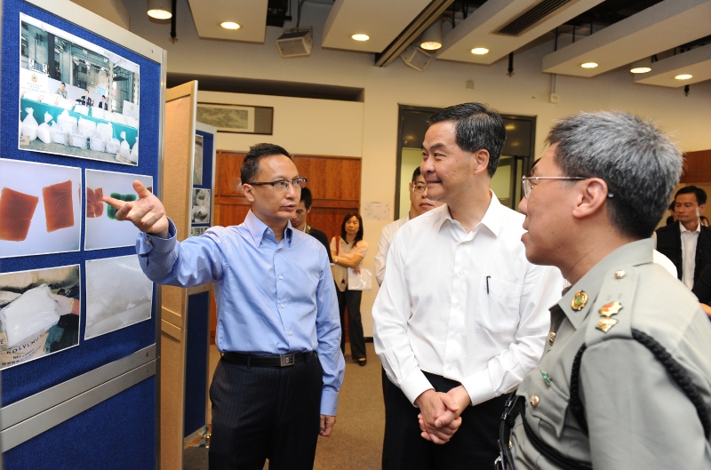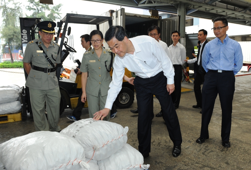 Mr Leung was briefed on the recent cases detected by Customs, including a record seizure of $760 million worth of cocaine in early July and the discovery of a batch of smuggled rhino horns and ivory products last November.