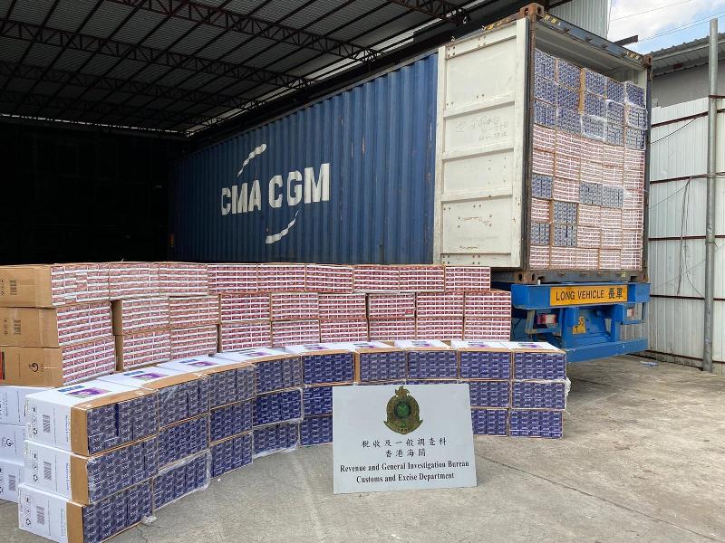 Customs officers intercepted a truck in Yuen Long on September 4 and seized about 1.3 million suspected illicit cigarettes. A male driver and a male delivery worker were arrested.