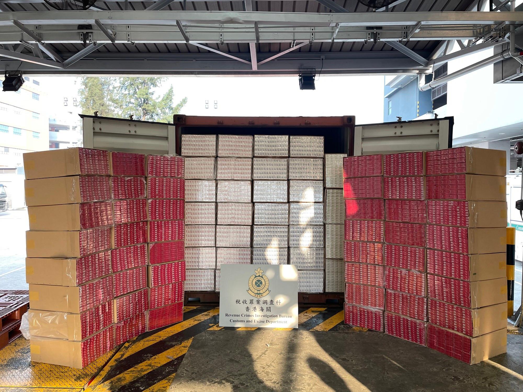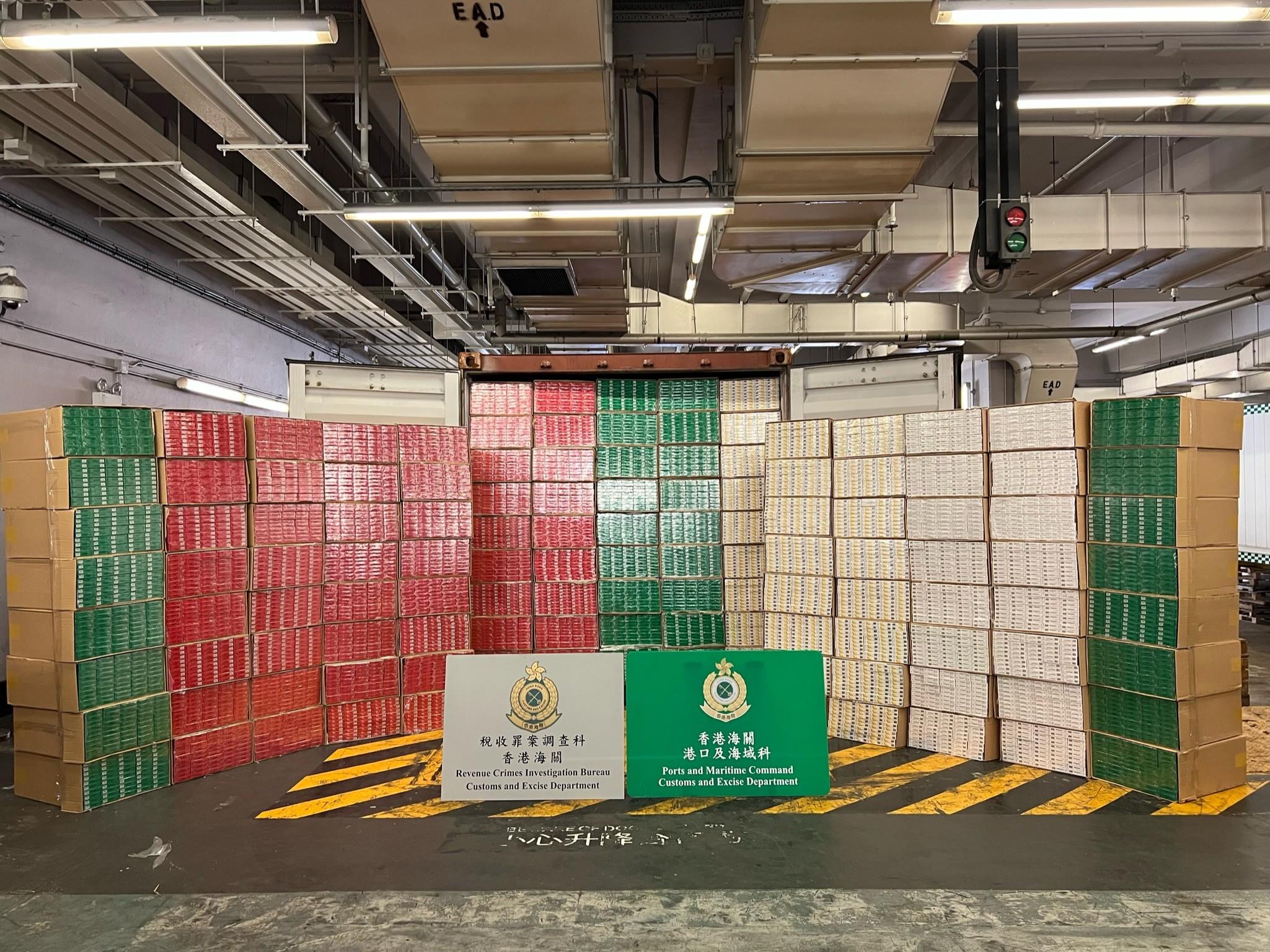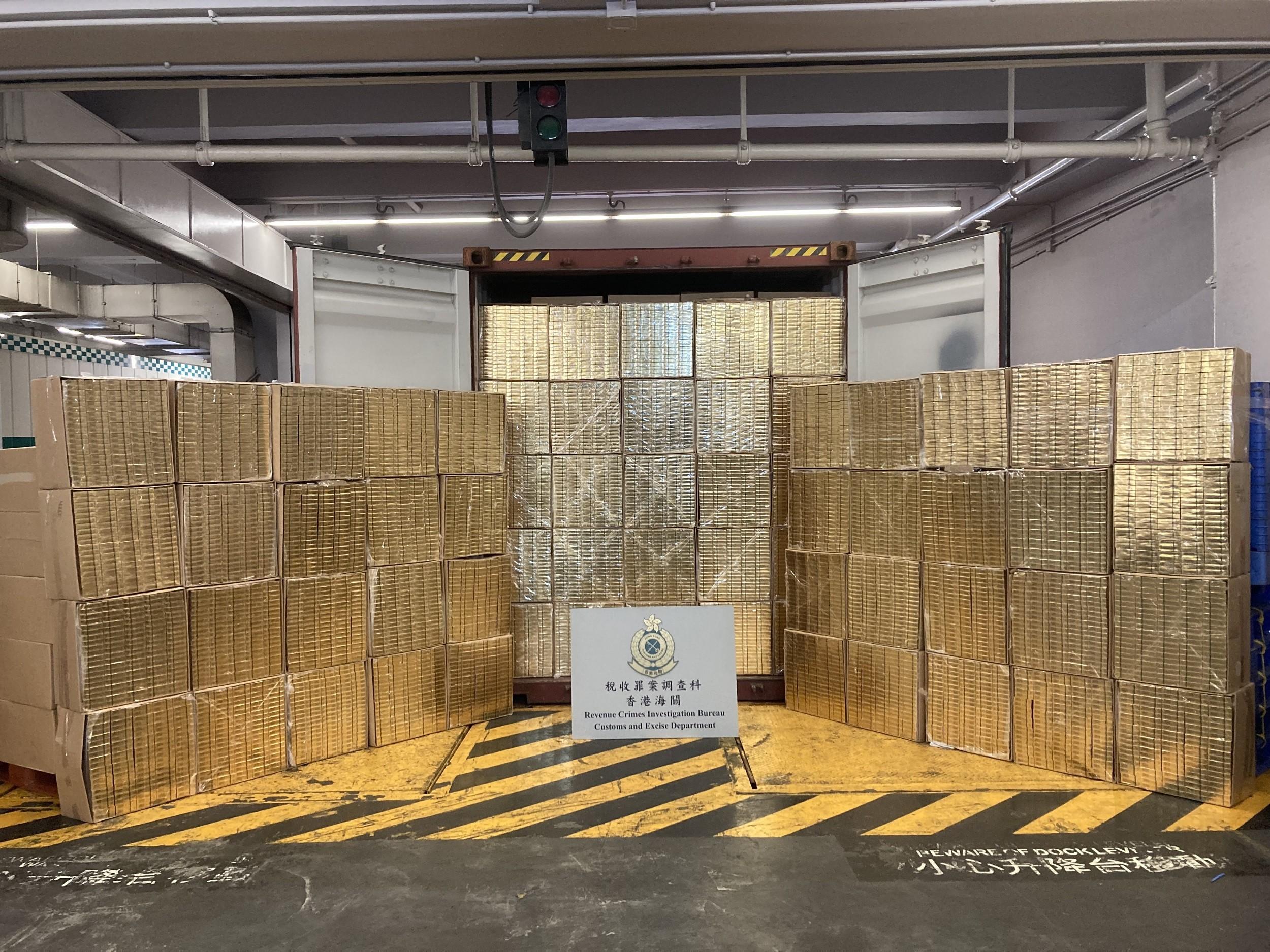 Hong Kong Customs on January 3 and today (January 6) seized a total of about 19 million suspected illicit cigarettes with an estimated market value of about $52 million and a duty potential of about $36 million at the Kwai Chung Customhouse Cargo Examination Compound.