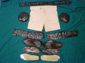 Hong Kong Customs officers yesterday (July 3) intercepted a foreign male passenger arriving from São Paulo, Brazil at the Customs Arrival Hall of Hong Kong International Airport and seized about 1.86 kilogrammes of cocaine. The drugs were concealed inside a specially made underpants and a pair of shoes he was wearing with an estimated market value of about $2.17 million.