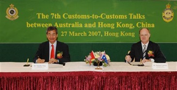 The Commissioner of Customs and Excise, Mr Timothy Tong, signed a joint communique for closer cooperation with the Chief Executive Officer of Australian Customs Service (ACS), Mr Michael Carmody, today (March 27) in a biennial meeting between the two administrations.