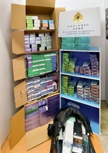 Customs officers conducted an anti-illicit cigarette operation in Cheung Sha Wan yesterday and seized inside a mini-storage at an industrial building the batch of suspected illicit HNB products, with an emerging brand involved. Two men suspected to be connected with the case, aged 19 and 42, were arrested.