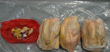 Shortly before 11.30am today, Customs officers of Shenzhen Bay Control Point seized from a 54-year-old woman, arriving from Shekou, 4.5kg fresh chicken, worth about $135.