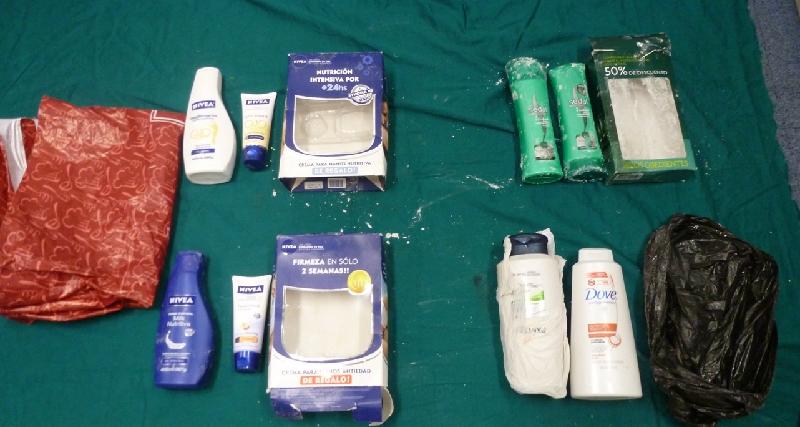 Liquid cocaine was found concealed in shampoo, conditioner and lotion bottles.