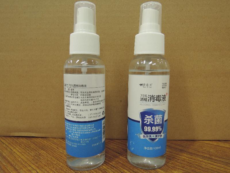 Officers also test-purchased another type of disinfectant alcohol from an air-conditioning works company in Kwun Tong, which was labelled as containing 75 per cent ethanol. Labelled as containing 100 millilitres, the disinfectant alcohol was put on sale in transparent plastic spray bottles and sold at a price of $10 per bottle.