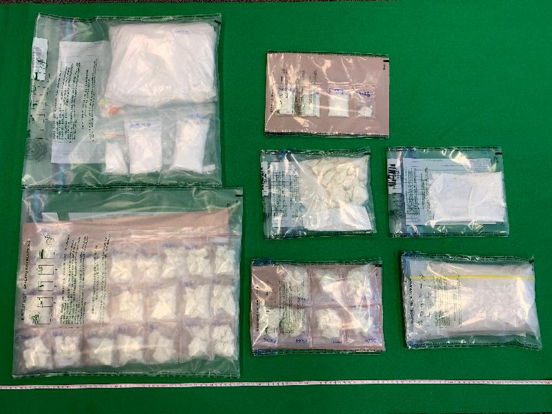 After follow-up investigation, Customs officers escorted the arrested man to a residential premises in the district where about 800g of suspected crack cocaine, about 500g of suspected cocaine, about 900g of suspected phenacetin as well as a batch of drug manufacturing and packaging paraphernalia were further seized. Another 23-year-old man suspected to be involved in the case was arrested.