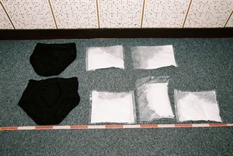 About 1.15pm, Customs officers intercepted for inspection a 45-year-old man acting suspiciously in Pak Wo Road, Fanling. After searching, Customs found 1.5 kilograms of ketamine on him.