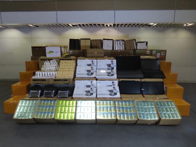 Hong Kong Customs seized a batch of suspected smuggled goods including electronic products, electronic cigarettes and suspected nicotine-containing cigarette oil with an estimated market value of about $7.8 million at Lok Ma Chau Control Point on December 5.