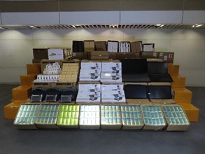 Customs officers intercepted an incoming truck at Lok Ma Chau Control Point for inspection on that evening and found the batch of suspected smuggled goods inside the cargo compartment, including 720 portable monitors, 550 sets of all-in-one computers, about 18 500 sets of electronic cigarettes and about 78 000 millilitres of suspected nicotine-containing cigarette oil. The 45-year-old male driver was arrested.