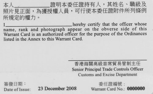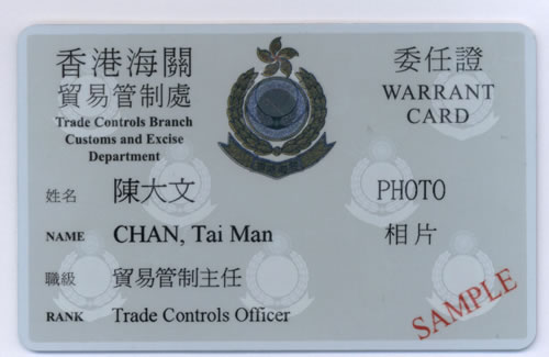 If members of the public have any questions in relation to the new Smart Warrant Card for the Trade Controls Officers, please call the Duty Controller on 2852 3185.