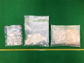 Hong Kong Customs yesterday (December 22) seized about 1 kilogram of suspected ketamine, about 230 grams of suspected cocaine and about 30g of suspected crack cocaine with a total estimated market value of about $1 million in Sham Shui Po.