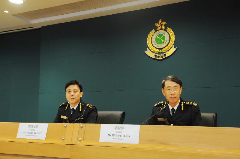 Lastly, Customs Officer Yuen Wai-cheung, who suffered injuries on his liver while on duty during an anti-illicit cigarette operation in October last year, and Inspector Hui Sai-man who donated part of his liver to save the life of his colleague, have got extensive support and concern from the general public. I would like to take this opportunity to express our gratitude to all of you, especially friends from the media present at this press conference. The two colleagues are now recovering satisfactorily under the good care of professional medical personnel. We have just received Professor Lo Chung-mau's notification that Customs Officer Yuen Wai-cheung will be discharged from hospital before the Lunar New Year. We will arrange for both colleagues to resume duty after seeking doctors' advice and the views of both colleagues.