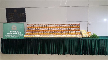 Hong Kong Customs today (January 17) conducted an operation to combat the sale of counterfeit health product drink. A total of about 250 boxes of suspected counterfeit health product drink and 100 pieces of other suspected counterfeit goods including proprietary Chinese medicines and skin care products with an estimated market value of about $25,000 were seized.