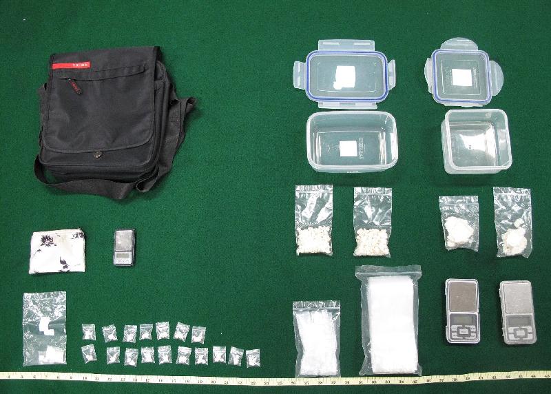 During an anti-narcotic operation yesterday night, Customs officers intercepted a man in Tuen Mun and found about 13g of suspected crack cocaine in his possession. During a search of his reported premises, an additional 98g of suspected crack cocaine and drug packing paraphernalia were found.