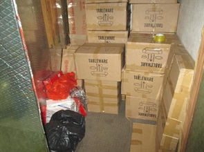 Hong Kong Customs yesterday (July 5) smashed a suspected illicit cigarette storehouse in Kowloon City and seized about 150 000 sticks of suspected illicit cigarettes and 4.4 kilograms of suspected cannabis resin.