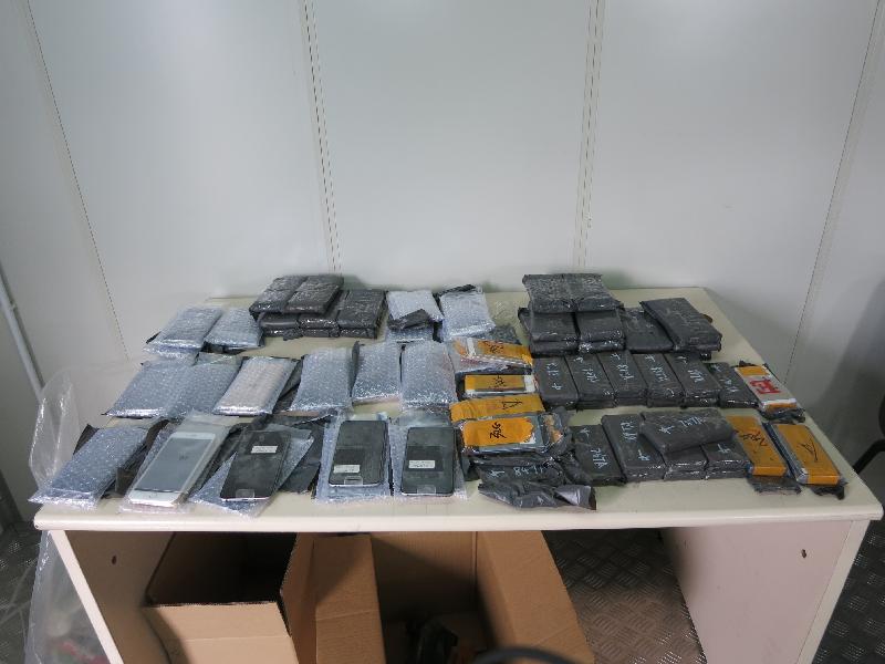 Customs officers intercepted an outgoing lorry declared as having nothing on board for Customs clearance at Lok Ma Chau Control Point this morning. During inspection, 140 unmanifested smartphones were found inside the driving compartment of the lorry. The 41-year-old male driver was arrested and released on bail.