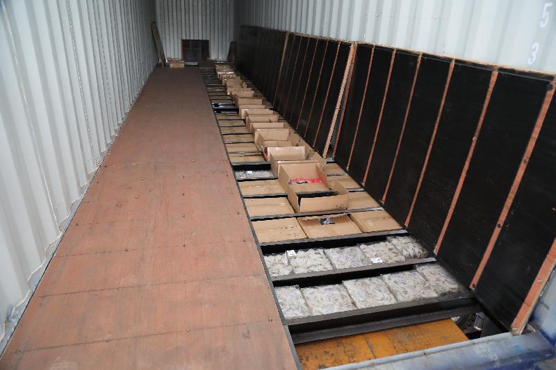 With Hong Kong and Mainland law enforcement agencies' recent rigorous enforcement actions against sea smuggling activities, it has been noticed by Customs that criminals have switched to using different concealment methods for hiding smuggled goods in order to evade detection by law enforcement agencies. It is rare to see smugglers using containers with large-scale false compartments to conceal general commodities as found in the smuggling case detected this time. Criminals would use false compartments in containers to smuggle dangerous drugs in the past.