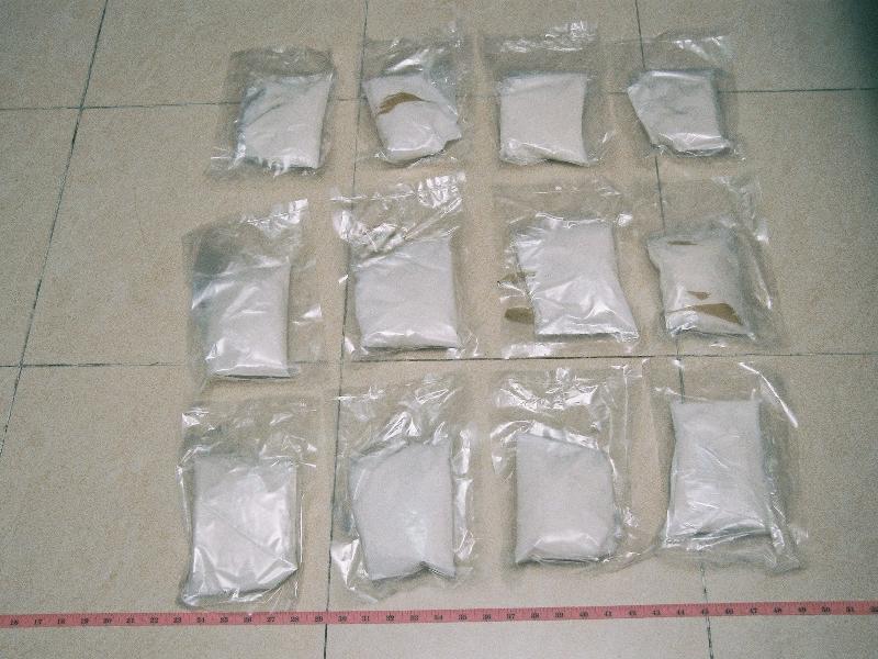 After investigation, Customs officers seized around three kilogrammes of ketamine and a small amount of methamphetamine at the man's residence in Fanling and arrested a woman.