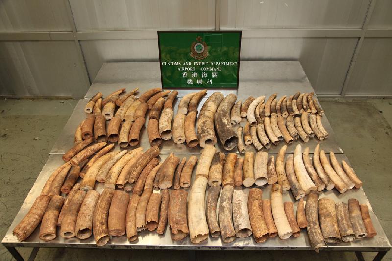 Hong Kong Customs this afternoon (April 30) seized a total of 113 ivory tusks in an air transshipment cargo at Super Terminal 1, Hong Kong International Airport. The seized ivory tusks are 300 kilograms in weight, with value about $3 million.