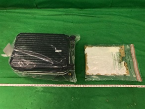 A male passenger arrived in Hong Kong from Vientiane, Laos, via Bangkok, Thailand, yesterday night. During Customs clearance, the batch of suspected methamphetamine was found concealed inside the false compartment of his suitcase. The man was then arrested.