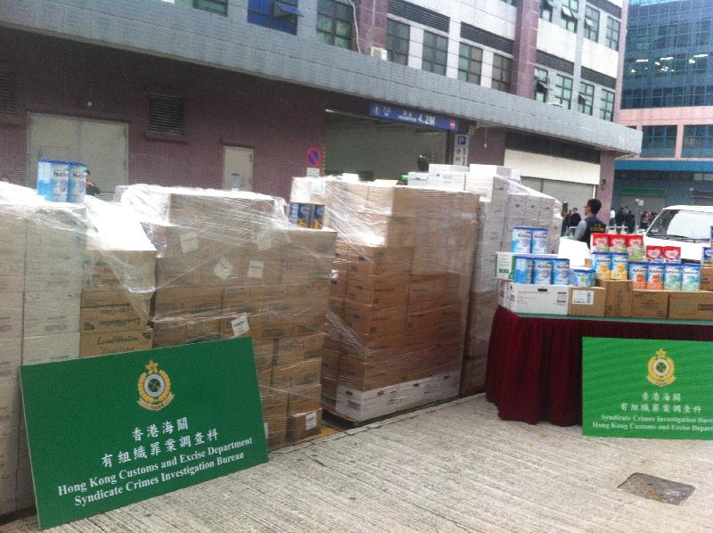 Following last weekend's two-day operation against the smuggling of powdered formula smashing three smuggling syndicates, Hong Kong Customs today (April 8) cracked down another smuggling syndicate which attempted to export unlicensed powdered formula by "ant-moving-home" approach and raided its store.