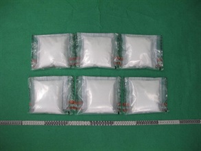 Customs officers inspected an air mail parcel from Germany on March 18 and found the batch of suspected ketamine concealed in six food packing boxes in the parcel. After follow-up investigation, Customs officers yesterday (March 20) arrested a man suspected to be in connection with the case in Sham Tseng.