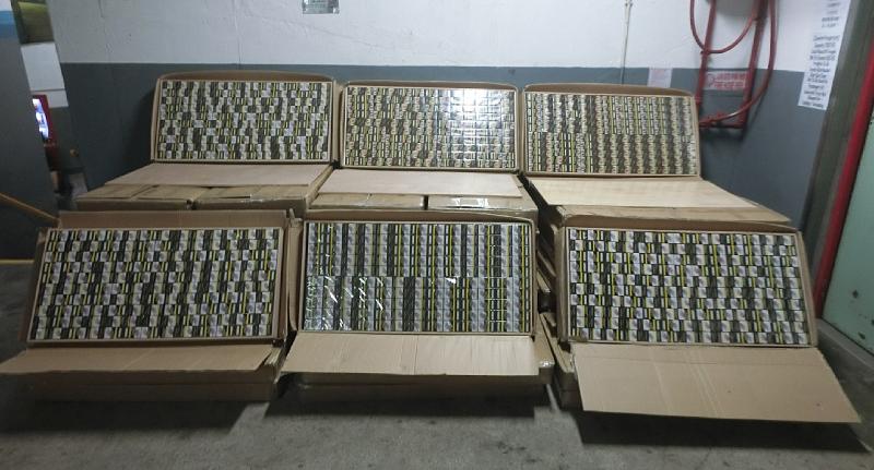 Acting on information, Customs officers searched a truck at a logistics site in Kowloon Bay yesterday and found the suspected illicit cigarettes mix-loaded with other goods onboard the truck in 50 carton boxes.