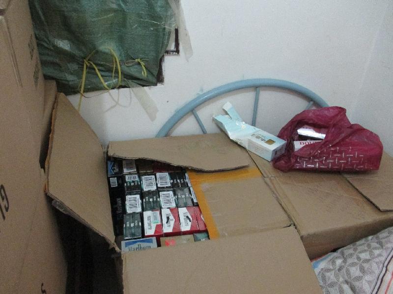 In an anti-illicit cigarette operation at Sha Tin today, Customs officers raided a residential unit suspected to be an illicit cigarette storehouse. About 350 000 sticks of suspected illicit cigarettes were seized with a total value of about $850,000 and a duty potential of about $650,000. A 52-year-old man was arrested.