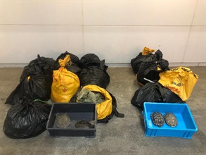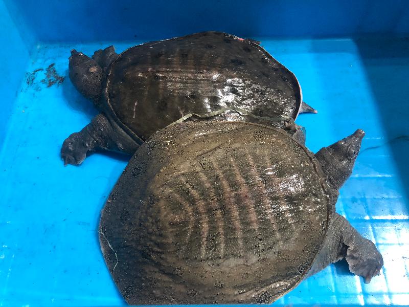 The batch of suspected illegally imported Chinese soft-shelled turtles and red-eared sliders were handed over to the Agriculture, Fisheries and Conservation Department for follow-up. Investigation is ongoing.