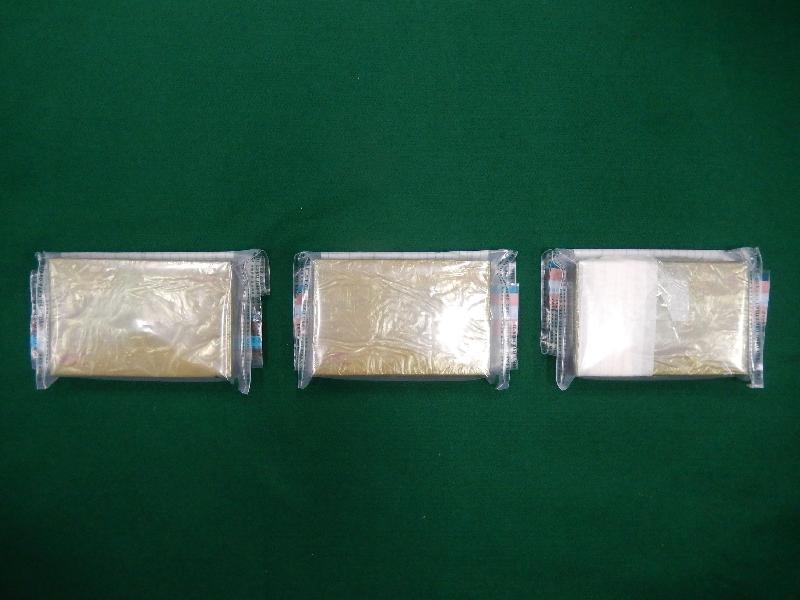 Hong Kong Customs today (October 2) seized about one kilogram of suspected heroin at Shenzhen Bay Control Point and arrested one man. The market value of the drugs was about $830,000.