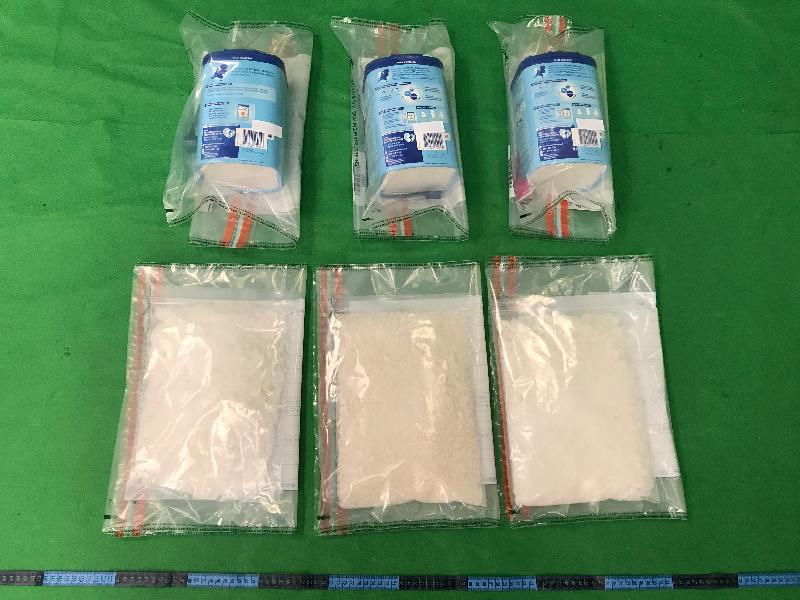 Hong Kong Customs seized about 3 kilograms of suspected ketamine with an estimated market value of about $1.9 million at Hong Kong International Airport on April 19.