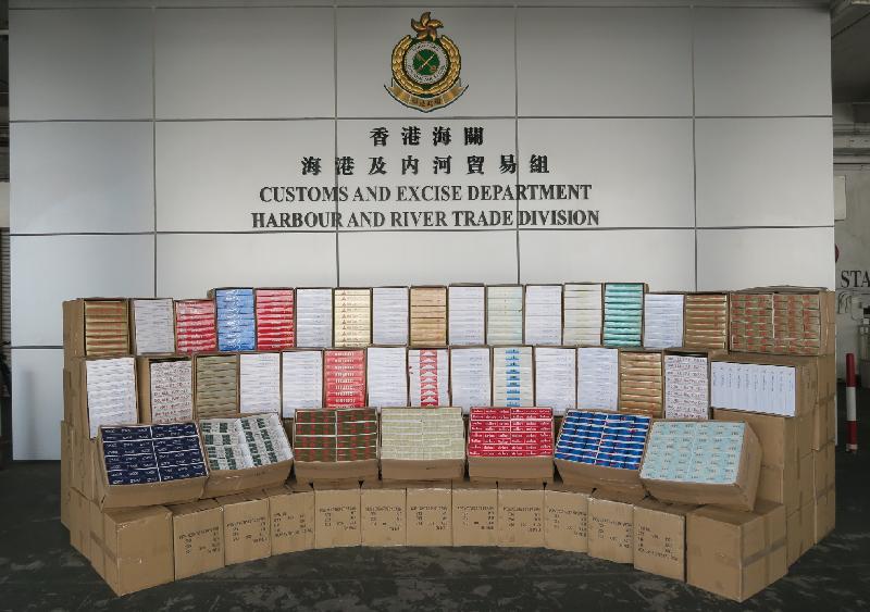 Hong Kong Customs yesterday (May 20) seized about 1.9 million suspected illicit cigarettes with an estimated market value of about $5.2 million and a duty potential of about $3.6 million at the River Trade Terminal Cargo Examination Compound in Tuen Mun.
