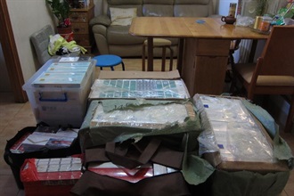 In an anti-illicit cigarette operation at Sai Wan today, Customs officers seized from a residential unit, which was suspected to be an illicit cigarette storehouse, about 70 000 sticks of suspected illicit cigarettes with a total value of about $190,000 and a duty potential of about $130,000. A 51-year-old woman was arrested. Investigation is ongoing.
