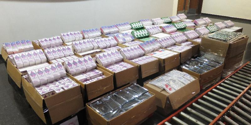 Hong Kong Customs yesterday (December 16) seized a large haul of suspected smuggled products with an estimated market value of about $0.4 million at the seashore of a construction site in Tung Chung.