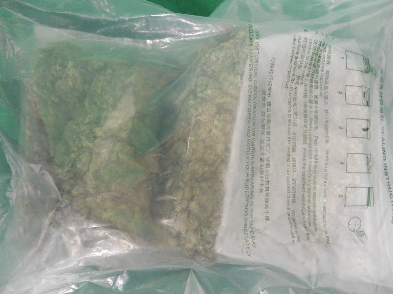 On January 18, Customs officers examined an air consignment from Canada which was declared as protein isolate, and uncovered the suspected cannabis buds concealed inside a plastic bottle. After investigation, Customs officers arrested a 29-year-old man suspected to be in connection with the case in Sau Mau Ping yesterday (January 19). Investigation is ongoing.