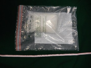 Customs officers yesterday evening intercepted an incoming male passenger at Lo Wu Control Point and found the suspected methamphetamine in the plastic bag he carried.