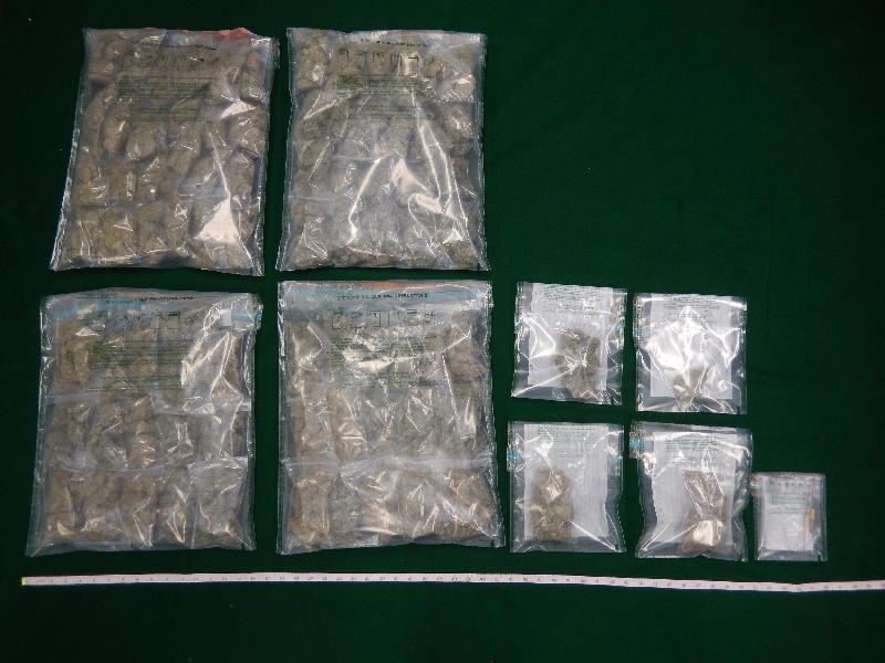 During an anti-narcotics operation in Tai Wai yesterday afternoon, Customs officers intercepted a man and found the suspected cannabis buds and suspected cannabis inside his two private vehicles. The 23-year-old man was then arrested. After investigation, Customs officers further seized a small quantity of suspected cannabis buds at the man's residential premises and arrested a 56-year-old man in the premises.