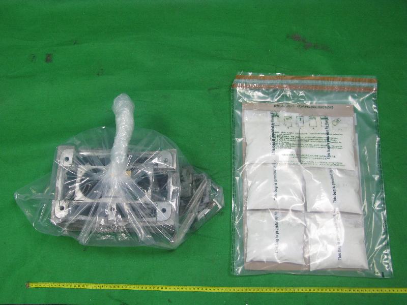 Customs officers inspected an air mail parcel that arrived from Brazil declared as containing "metal spare parts" at the HKIA's Air Mail Centre. Upon examination, about 1.54kg of cocaine was found concealed within hollow spaces of the metal spare parts. Subsequent to follow-up investigation, Customs officers arrested a man in Yuen Long yesterday (March 23).