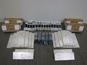 Customs officers intercepted an outgoing container truck at Lok Ma Chau Control Point yesterday afternoon and seized a large quantity of central processing units concealed inside the altered axles of the trailer. Subsequently, Customs officers searched a cargo yard in Yuen Long and an industrial building unit in Kowloon Bay where silver bars, central processing units, solid state drives, used smartphones and packing materials were further seized.