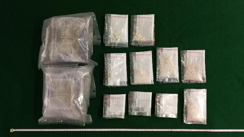 Hong Kong Customs yesterday (April 17) seized about 2.3 kilograms of suspected cocaine, about 80 grams of suspected methamphetamine and a small quantity of suspected crack cocaine with an estimated market value of about $2.45 million in Kwai Chung.